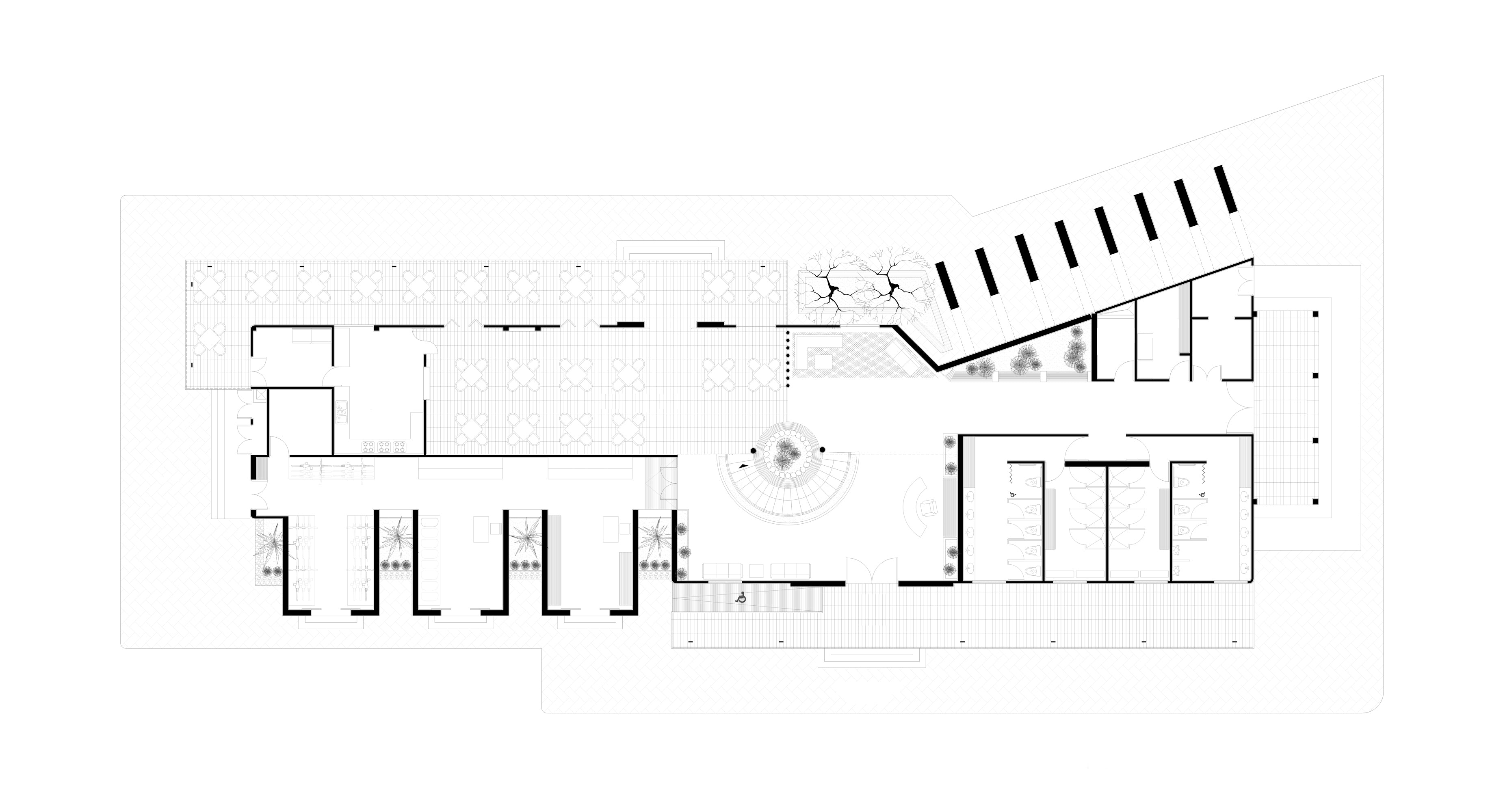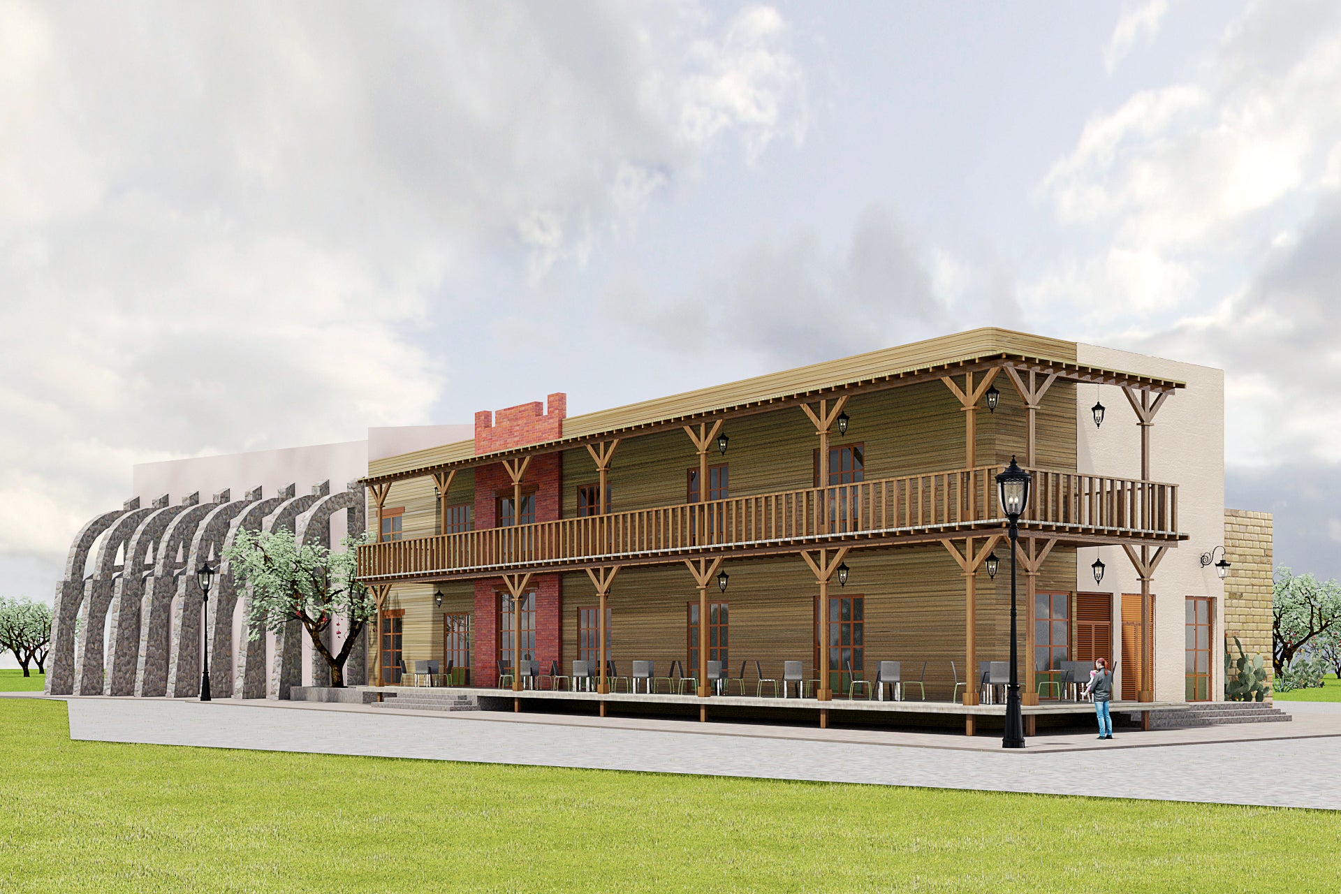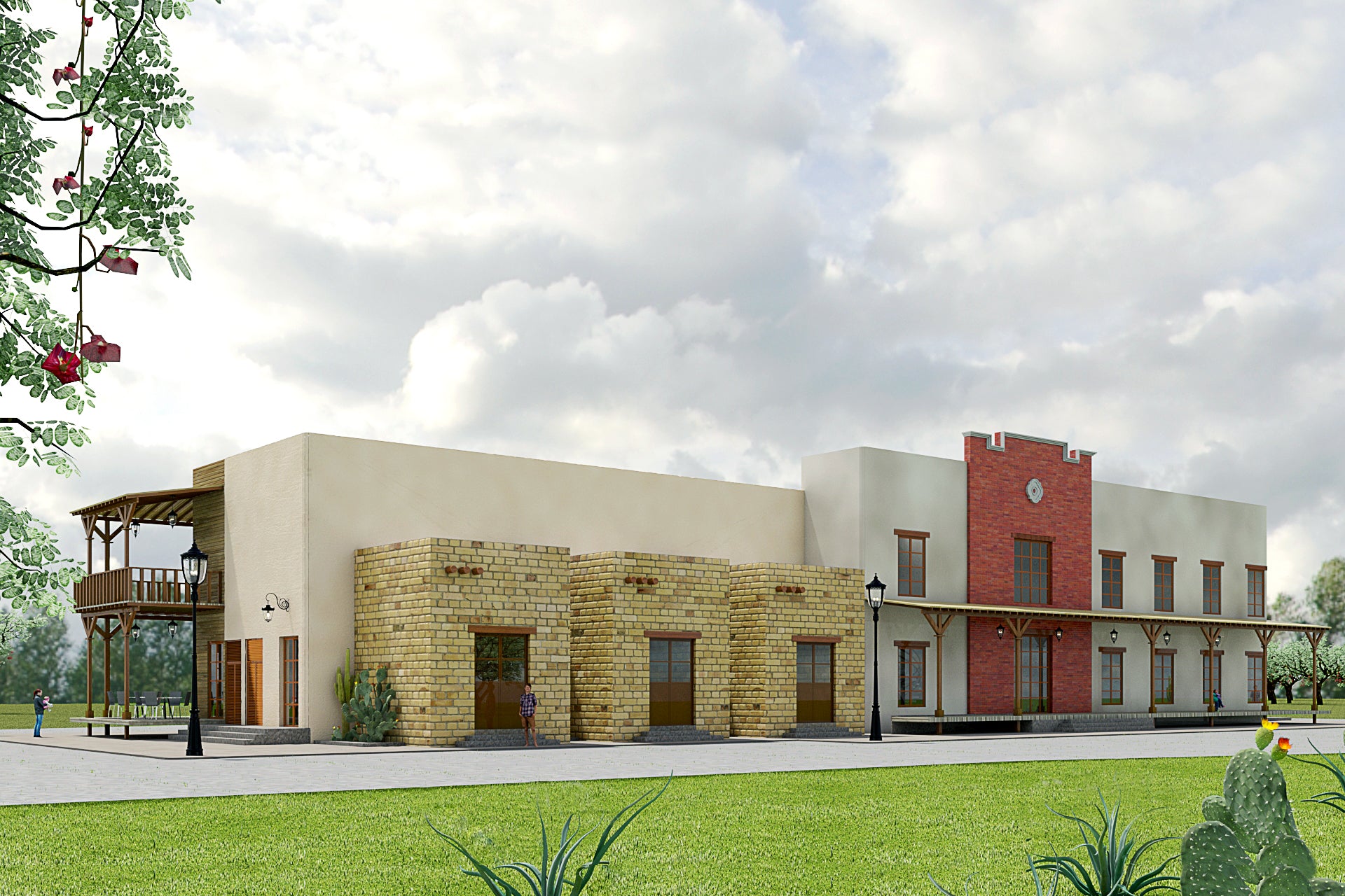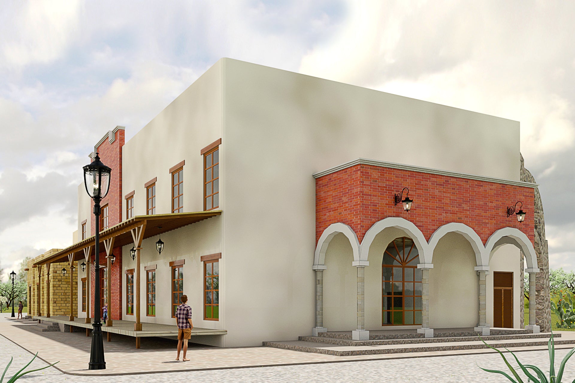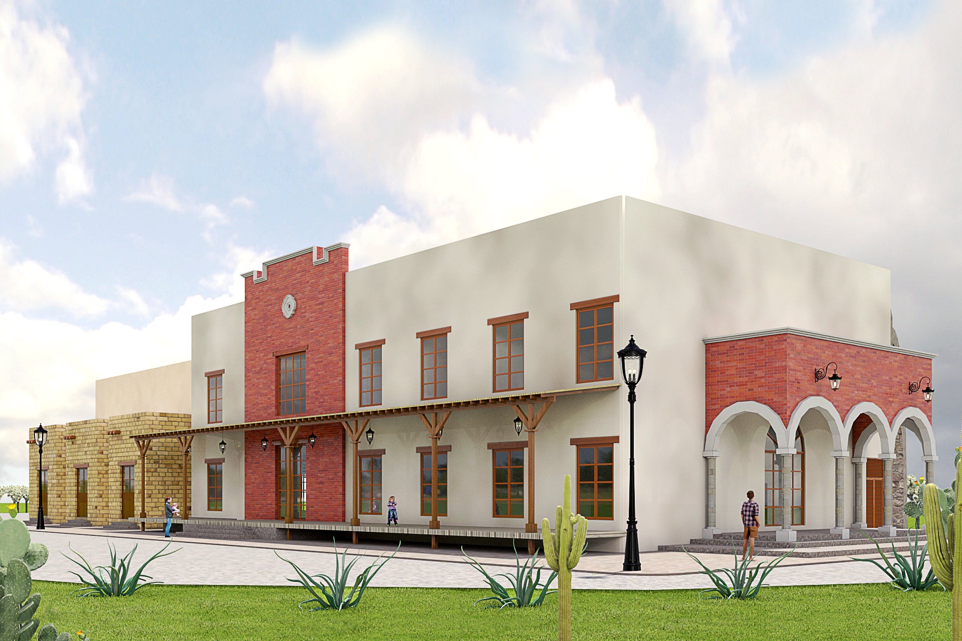 La edificación fusiona los estilos de arquitectura del viejo oeste americano, la tradición del norte de México y el estilo Santa Fe de Nuevo México para crear un lenguaje formal. Para esto se usan varios volúmenes para simular la individualidad de cada estilo y mostrar sus características únicas sin mezclar elementos. La vegetación se utiliza para suavizar los cambios entre formas.